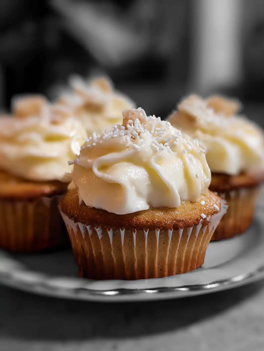 - Whip cream, powdered sugar, and vanilla to stiff peaks. Frost cupcakes, top with crushed wafers, and chill 30 minutes.