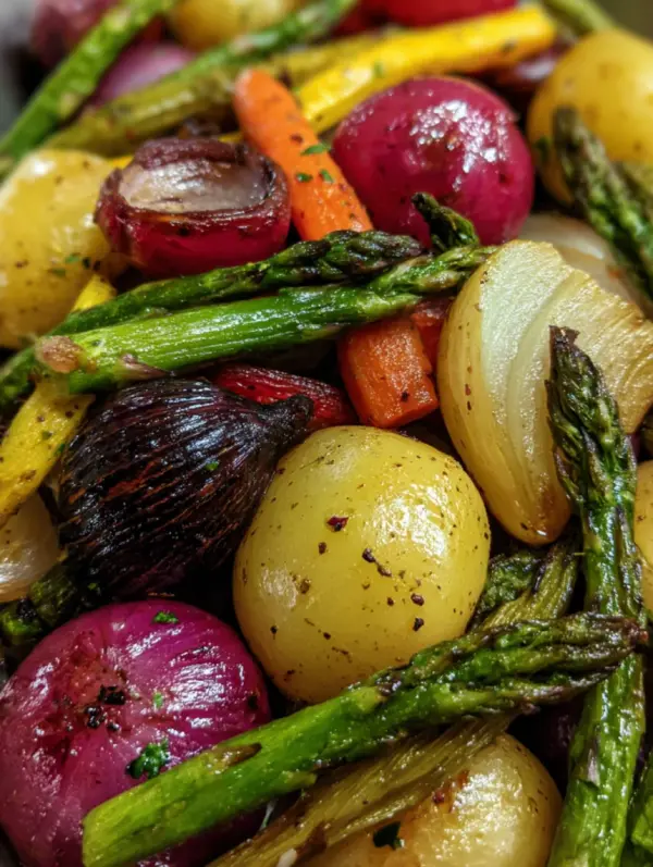 - Pour the dressing over the vegetables and gently toss to coat evenly.