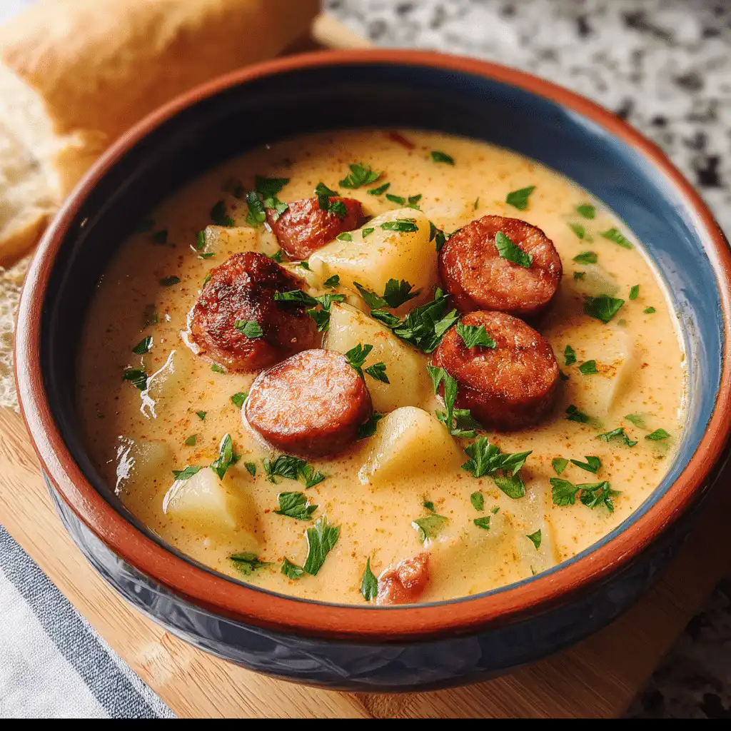 The andouille hit the oil with that perfect sizzle, sending up an aroma so deeply satisfying I had to step back and just breathe it in. That smoky, garlicky perfume filled my kitchen instantly, promising something soul-warming was about to happen. This was my first attempt at making Creamy Cajun Potato and Andouille Soup, and I already knew it would become one of those recipes I’d turn to whenever I needed comfort in a bowl.